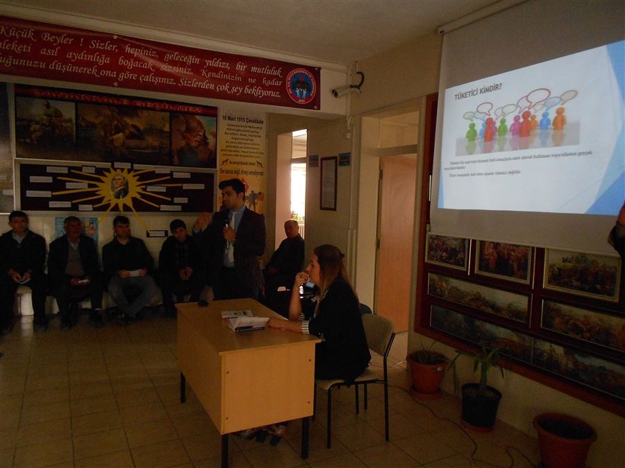 15 Mart Dünya Tüketiciler Günü ve 15-21 Mart 2018 Tüketiciyi Koruma Haftası programlarımızın bir yenisini daha “85. Yıl Milli Egemenlik İlkokulu” nda gerçekleştirdik. İlkokul olması sebebiyle özellikle değerli öğrenci velilerimizin katılımıyla gerçekleşen programa ilgi oldukça yoğundu. Öğrenci velilerimizin bilinçli birer tüketici olması adına, 6502 Sayılı Tüketicinin Korunması Hakkında Kanun ve Uygulama Yönetmelikleri hakkında geniş kapsamlı bilgiler verildi. İl Müdür Vekilimiz ve aynı zaman Tüketici Hakem Heyeti Başkanı Ayşe ÜNAL ve İl Müdürlüğümüzde görevli Tüketici Hakem Heyeti Raportörü Süleyman DÜNDAR tarafından yapılan anlatım da, velilerimizin soruları da cevaplandırıldı. İl Müdür Vekilimiz Ayşe ÜNAL; gösterdikleri yoğun ilgiden ötürü 85. Yıl Milli Egemenlik İlkokulu idari kadrosuna, öğretmenlere ve değerli öğrenci velilerine teşekkürlerini sundu.